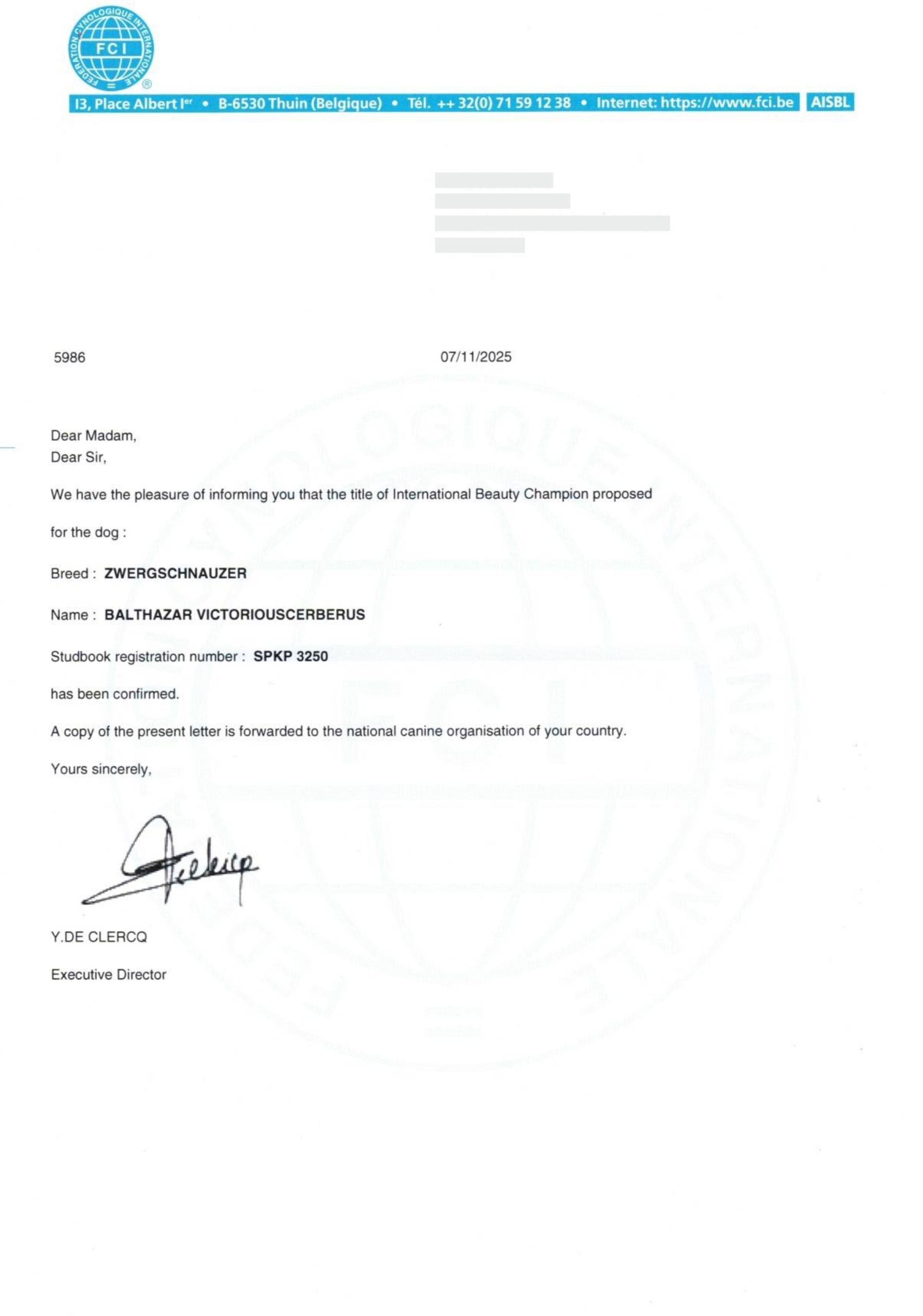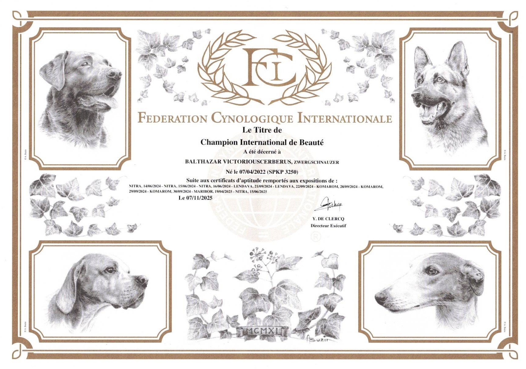 Oficiálne potvrdenie získania titulu C.I.B. / Inter Champion